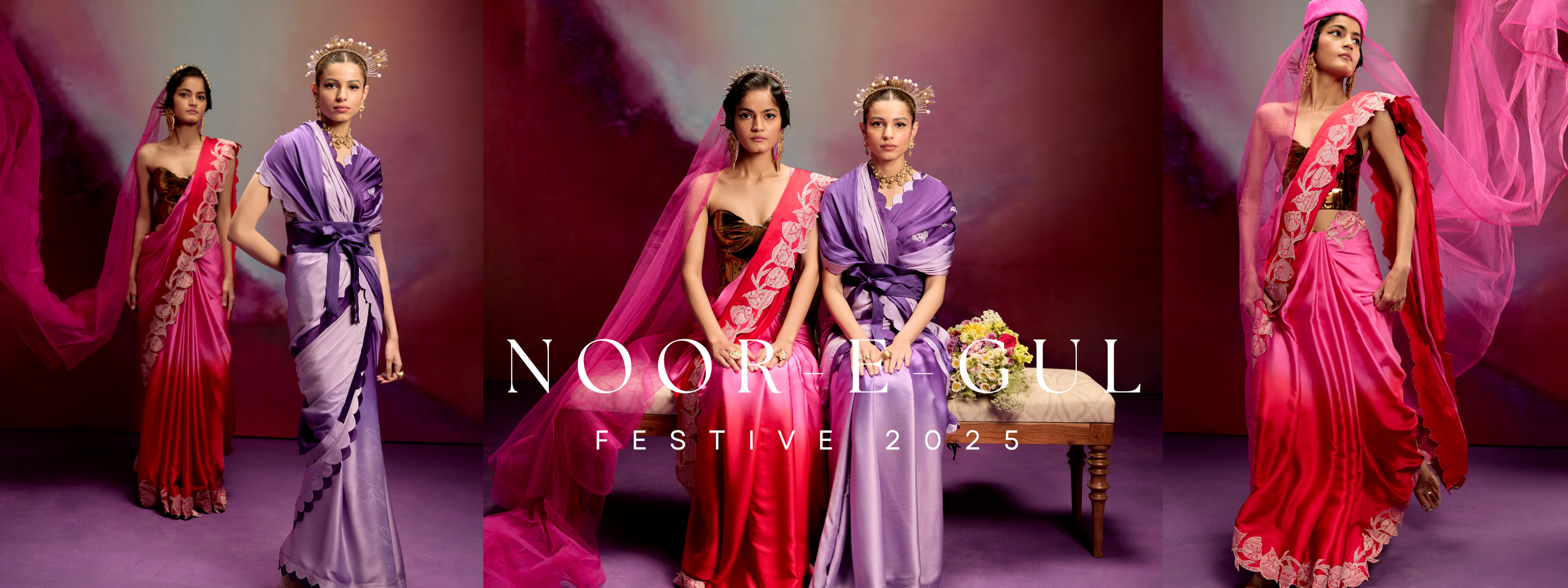 Prisha purple ombre saree set