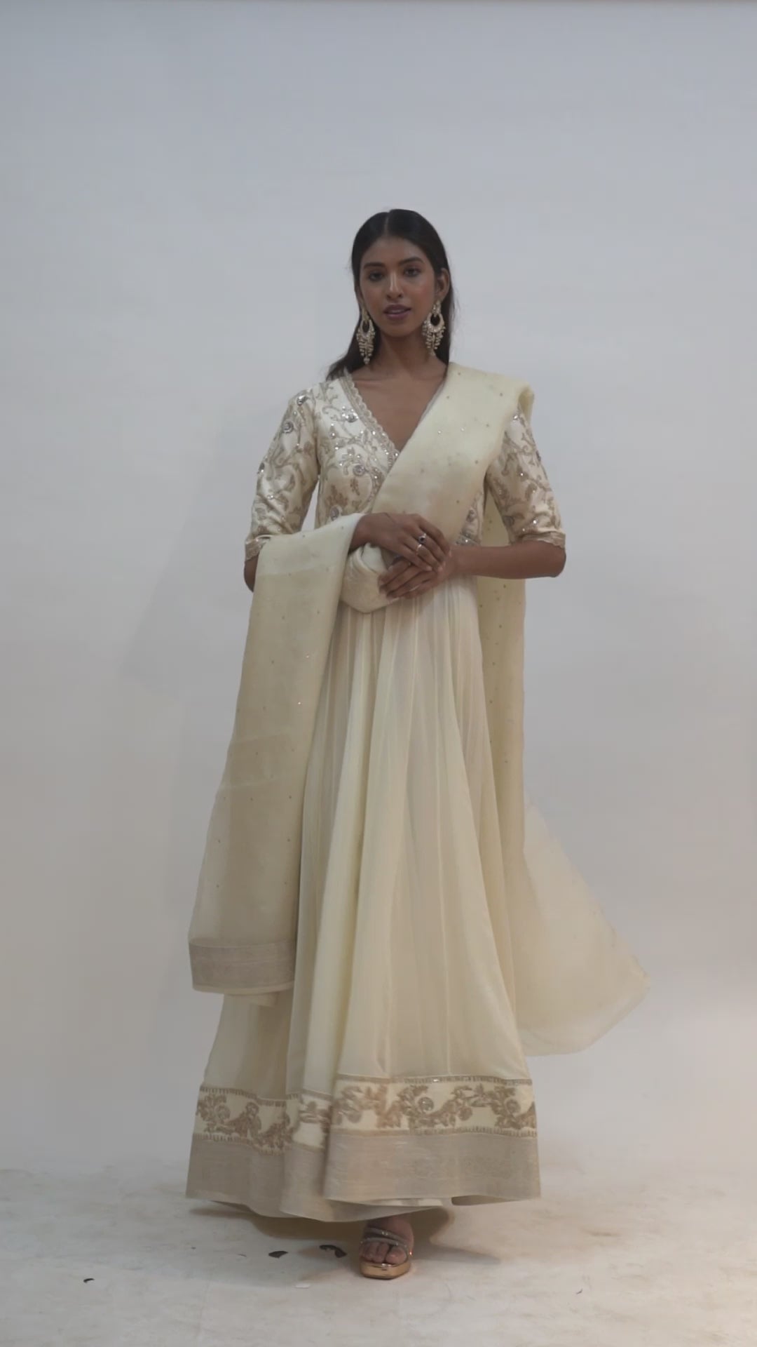 Rawsilk yoke with zari embroidered kali dress with embroidered border and hand woven zari border. It comes without dupatta.