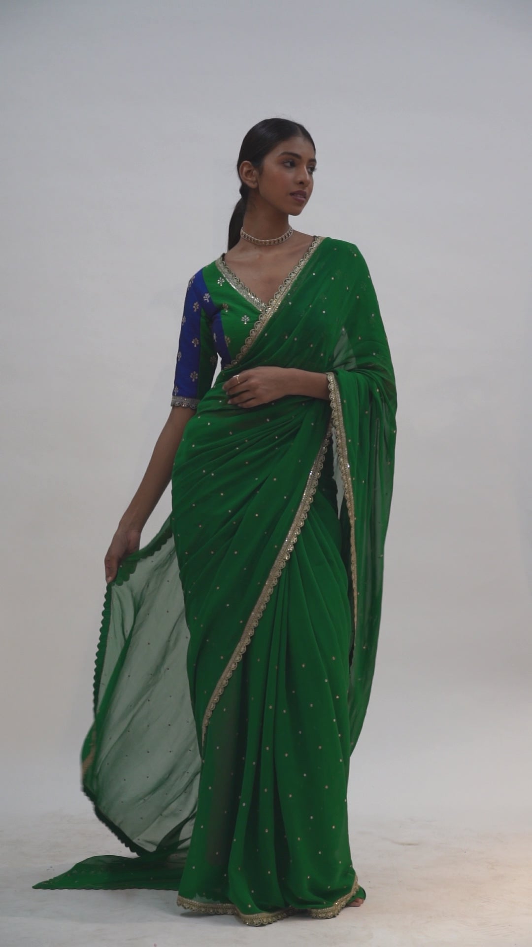 Emerald Green embroidered saree & Blouse set